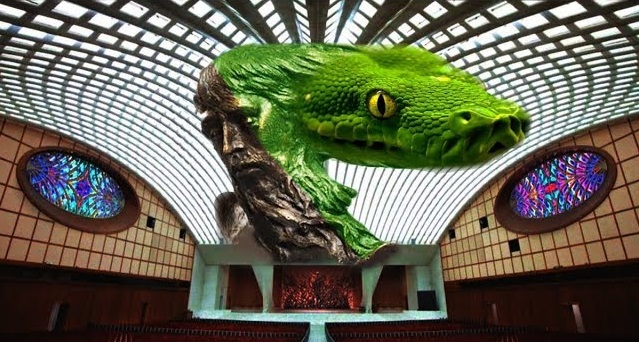 Papa’nın İzleyici Salonu’na gerçekten bu şekilde bakarsak yılanın ağzından konuşulduğu anlaşılıyor. Ağzın önünde duruyor ve onların sözlerini dinleyen herkese söylemekte ayrıca Onlar da sembolizm yoluyla insanlığa bunun olup bittiğini göstermekte. Kim bilir belki de çevremizi saran ve görmediğimiz pek çok sembol bulunmayı beklemektedir.